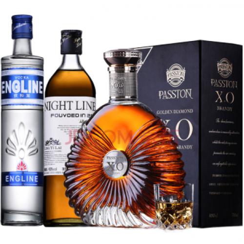 法国进口洋酒XO白兰地派斯顿金钻700ml送夜线威士忌700ml+伏特加500ml洋酒组合年货礼盒装